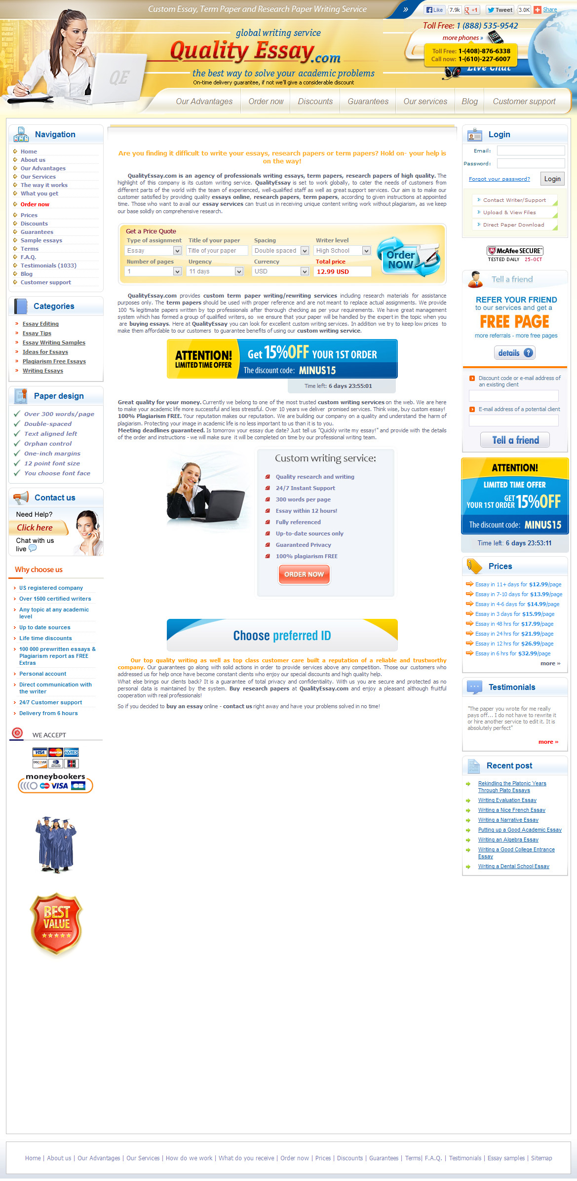 At Quality Essay, we have only sophisticated and devoted to their work writers and staff. Quality Essay guarantees that you will gain a lot of benefits from our custom essays online company. Hurry up! Buy essay papers at Quality Essay!